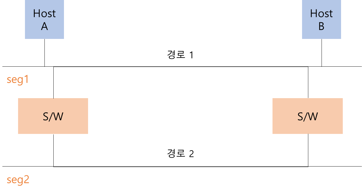위 그림에서 Host A와 Host B가 통신하는 상황이라고 생각해보자. 두 Host 사이에는 2개의 경로가 구성되어 있어 하나의 경로에 장애가 생겨도 다른 하나의 경로로 통신할 수 있도록 설계를 했다.