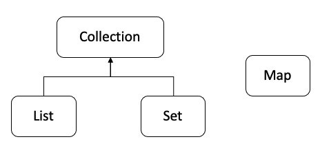 Collections Framework에서는 컬렉션데이터 그룹을 크게 3가지 타입이 존재한다고 인식하고 각 컬렉션을 다루는데 필요한 기능을 가진 3개의 인터페이스를 정의하였다. 그리고 인터페이스 List와 Set의 공통된 부분을 다시 뽑아서 새로운 인터페이스인 Collection을 추가로 정의하였다.