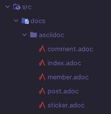 그리고 조각들을 모을 문서를 src/docs/asciidocs 경로에 작성한다