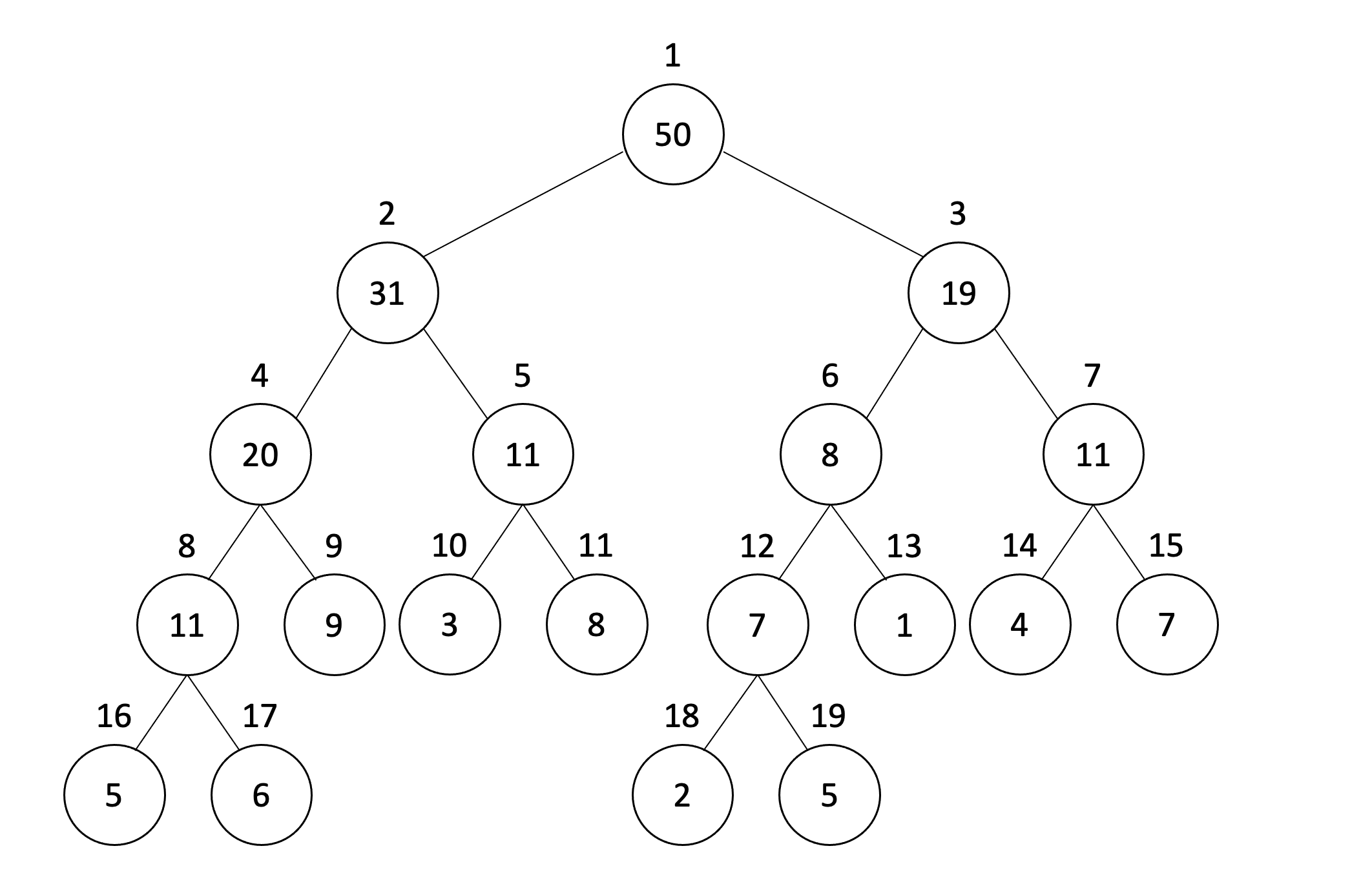# 현재 인덱스(최상단 노드 인덱스인 1부터 시작)