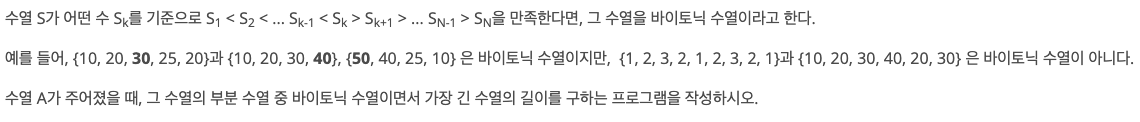 [Baekjoon] 11054: 가장 긴 바이토닉 부분 수열