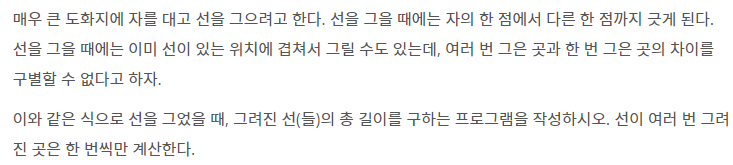 선을 정해진 횟수만큼 긋고 최종 길이를 구하는 단순 스위핑 문제이다.