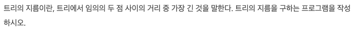 트리에서 두 점 사이의 거리가 가장 긴 길이를 트리의 지름이라 하는데 트리의 지름을 구하는 문제이다