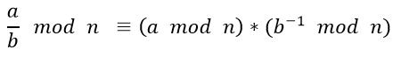 여기서 b^(-1)은 n이 소수라면 페르마의 소정리를, 소수가 아니라면 확장 유클리드 알고리즘을 통해 구할 수 있다.