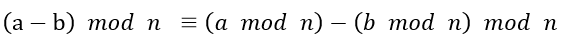 이는 a ≡ b (mod n), 즉 a mod n = b mod n 라는 뜻이다. (≡ 는 동치의 의미이다)