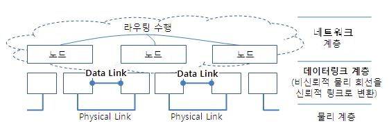 여기서 데이터 링크 계층은 인접한 네트워크 노드끼리 데이터를 전송하는 기능과 절차를 제공하며, 네트워크 계층은 여러 대의 라우터들을 바탕으로 데이터를 패킷 단위로 잘게 쪼개어 전송하는 역할을 한다.