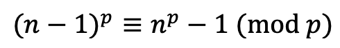여기서 (p-1)!은 p와 서로소이므로 양변에서 나누어줄 수 있다. 따라서