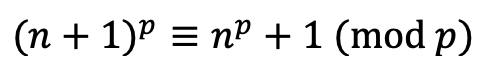 먼저 페르마의 소정리는 다음과 동치이며, n = 0일 경우는 자명하다.