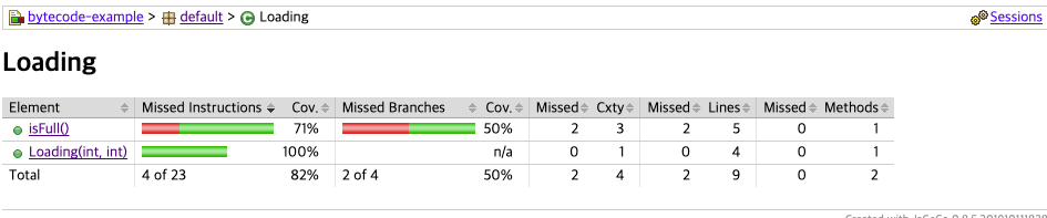 그러면 다음과 같이 각 커버리지 항목마다 총 개수와 놓친 개수를 표시해준다.